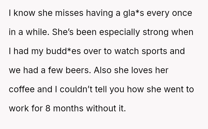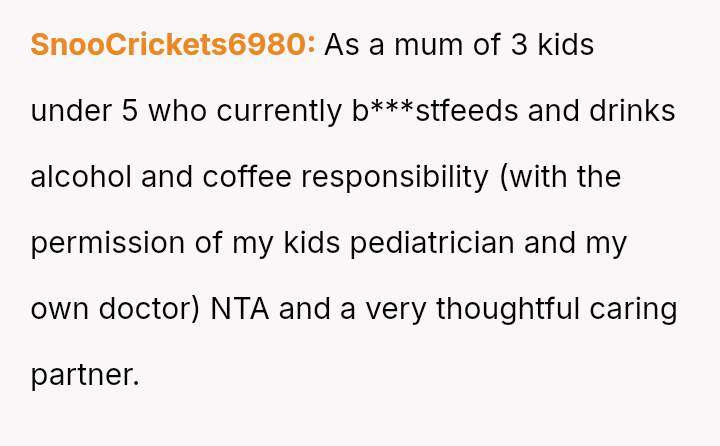The original poster acted out of a desire to comfort his girlfriend after the birth of their child, attempting to bring back small familiar pleasures like wine and coffee, which he perceived as thoughtful gestures.