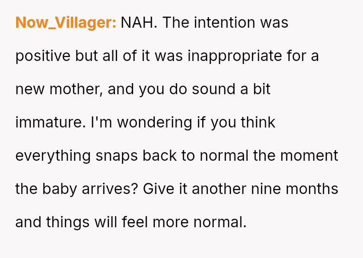 Given the sharp disagreement between the OP's kind intentions and the parents' serious concerns about health and maturity, is the OP's gesture justifiable as a loving effort, or was it an insensitive failure to respect the sensitive postpartum period and the critical input of her family?