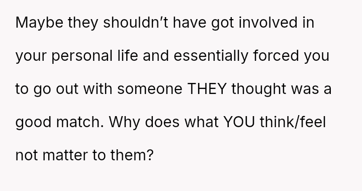 The OP acted to protect his boundaries and comfort level by ending the date early and subsequently declining further contact, leading to conflict with the matchmaker and his friend.