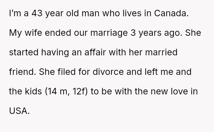 After the shattering collapse of his marriage, a 43-year-old Canadian father found himself navigating the daunting waters of single parenthood alone, raising his two young children with unwavering strength.