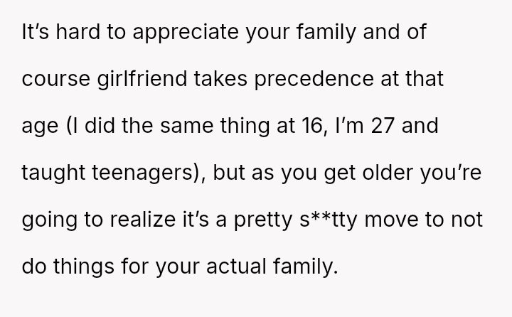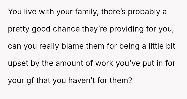 The central question is whether the OP has a responsibility to balance his dedications across his romantic partner and his immediate family, or if his time spent on a hobby gifted to his girlfriend is an entirely personal choice that does not require equitable distribution among other relatives?