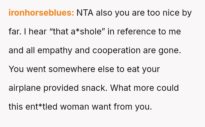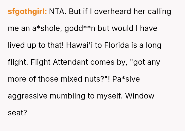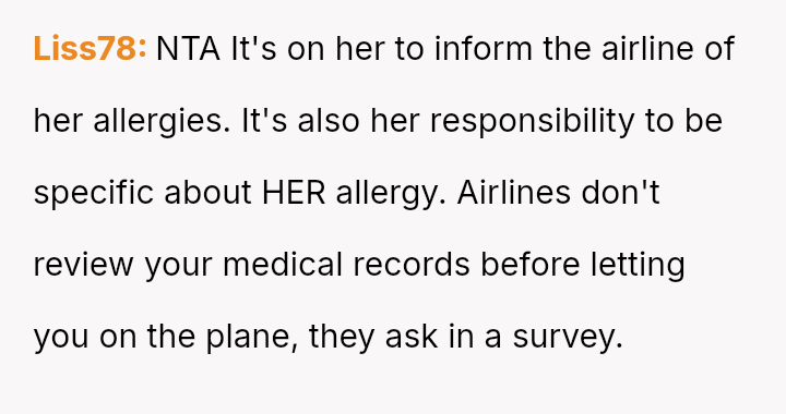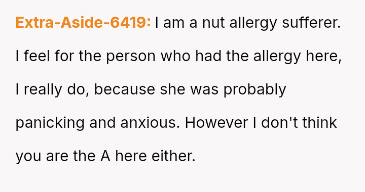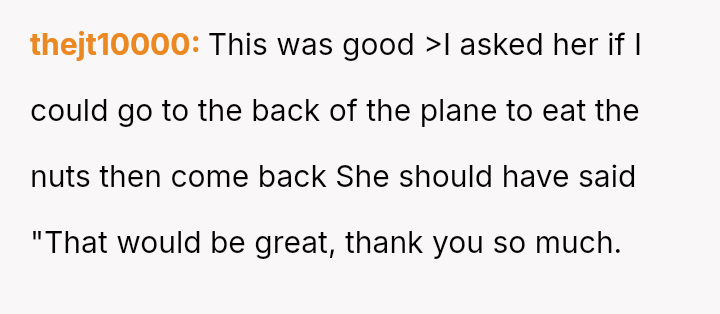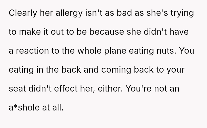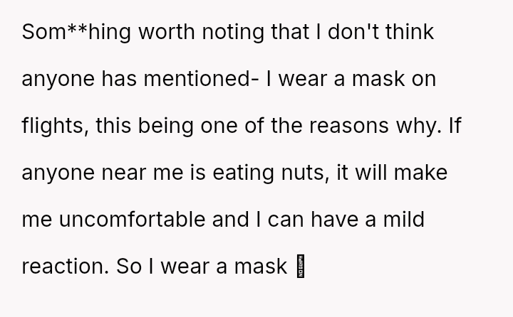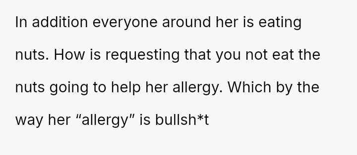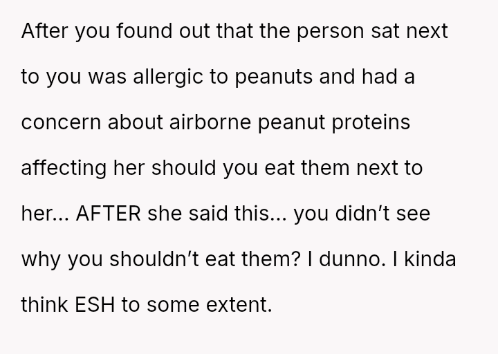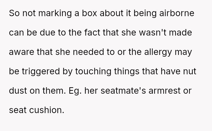 As flight attendants distributed mixed nuts, the woman seated next to the original poster (OP) immediately informed them she had a nut allergy.