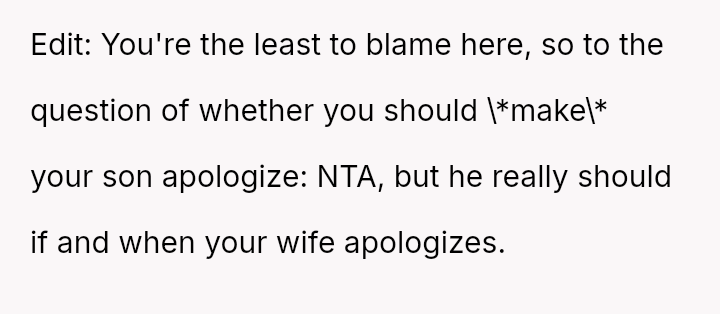 Was the OP correct in refusing to make their son apologize for revealing the hurtful behavior and emotional distress caused by his wife and stepsons, or should the OP prioritize maintaining family unity and supporting the wife's feeling of public humiliation?