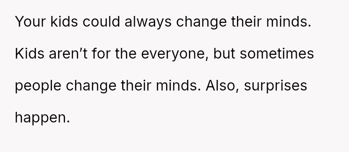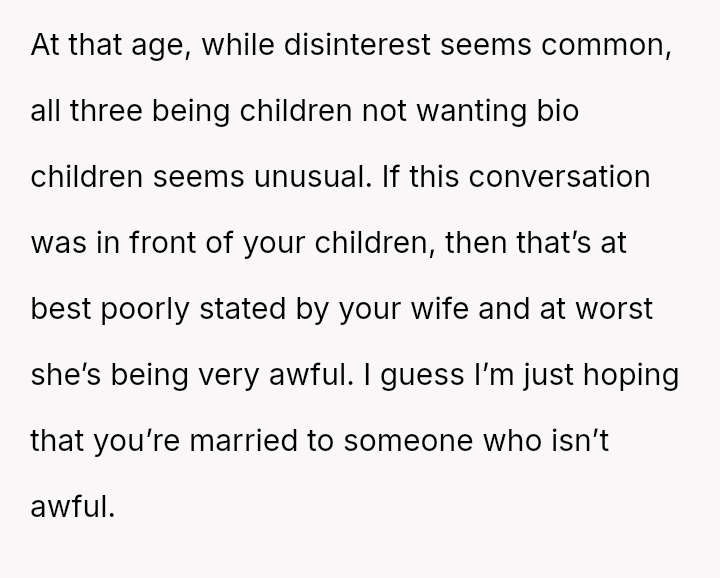 Was the OP justified in defending his minor children's right to bodily autonomy concerning future reproduction, or did his direct statement invalidate his wife's deeply held emotional wishes for her future family structure?