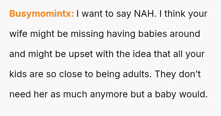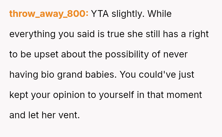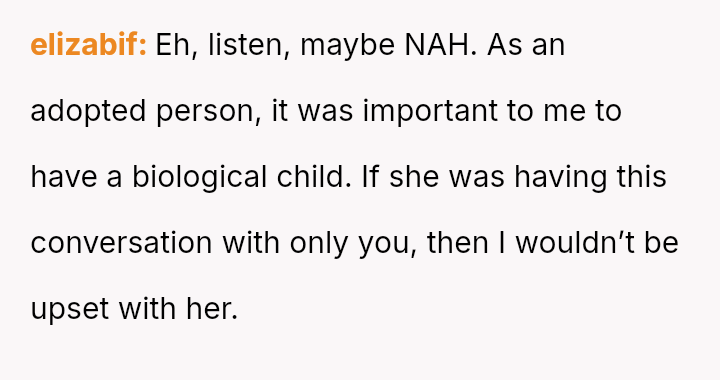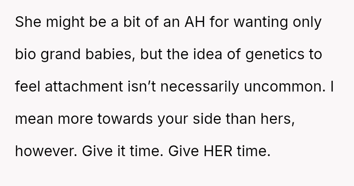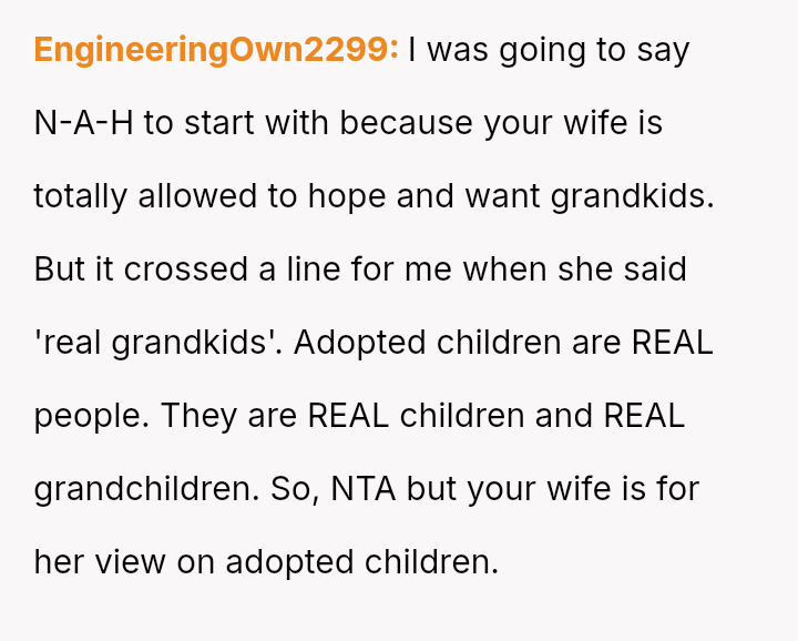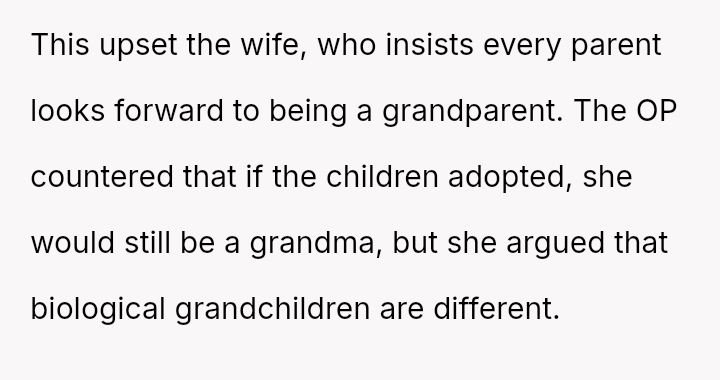 This directly clashed with the wife's strong emotional desire to become a biological grandparent, leading to an argument where the OP felt he handled the situation poorly despite believing in his stance.