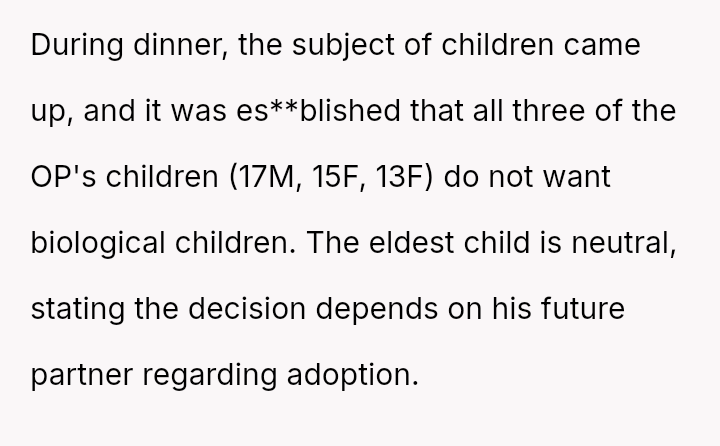 The parents faced the painful reality that their three children, still in their teens, expressed a clear disinterest in having biological kids, shaking the foundation of expectations built over years.
