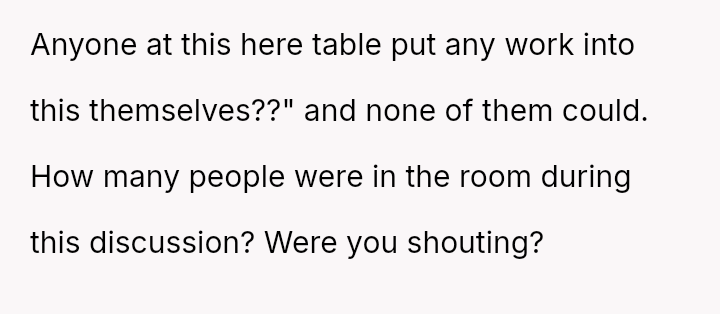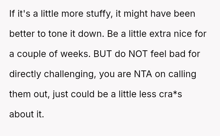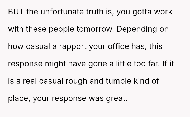 The OP reacted defensively by challenging the group's participation and making an inflammatory comment, leading to workplace drama.