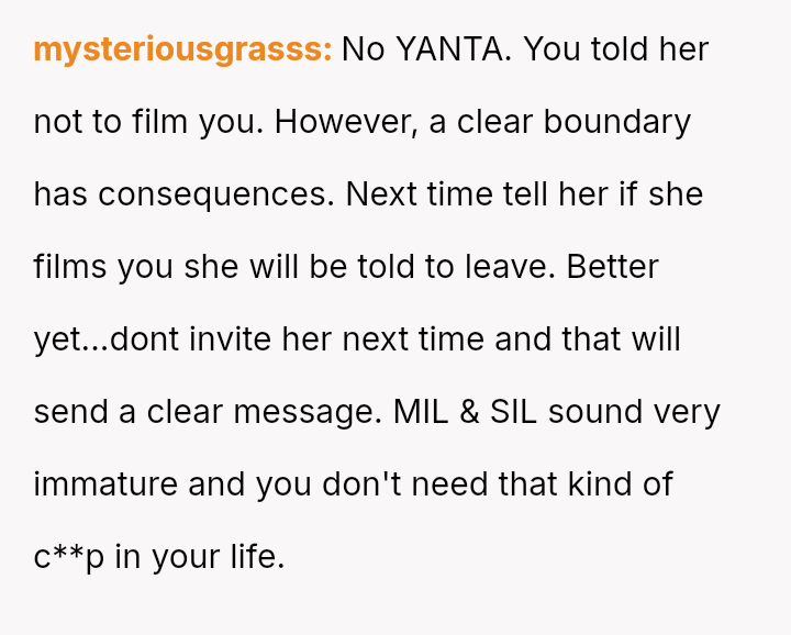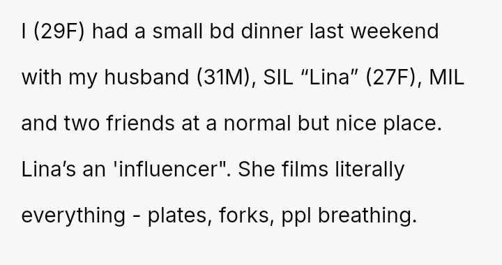 The original poster (OP) faced a direct conflict between their stated need for privacy on their birthday and the sister-in-law's (SIL) professional need to film content.