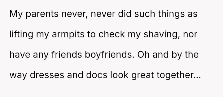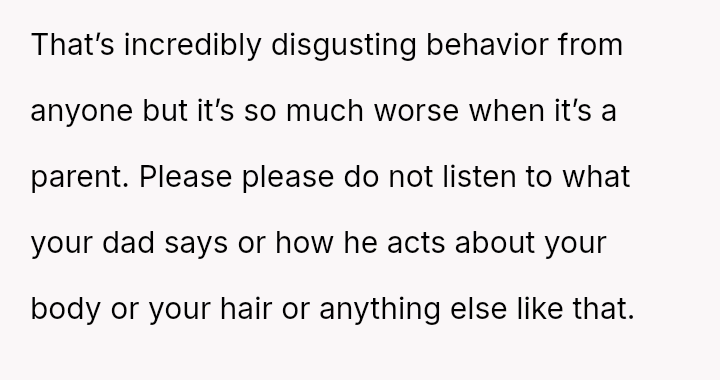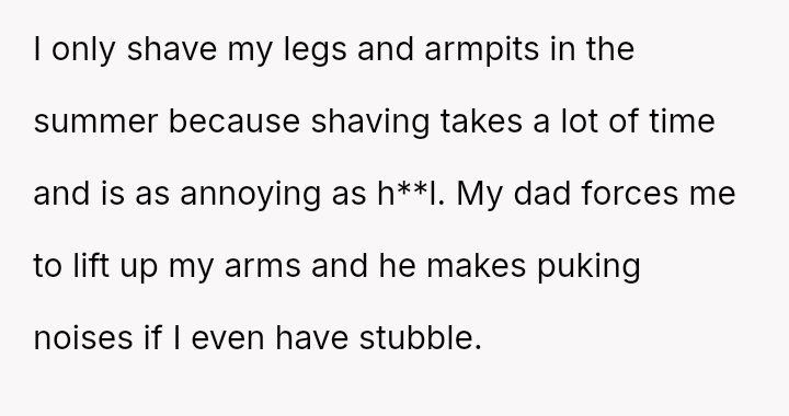Is the father's insistence on a perfect appearance rooted in genuine concern for social propriety, or is it an overstep into controlling a teenager's bodily autonomy and personal style; where should the line be drawn between parental guidance and excessive criticism in matters of presentation?