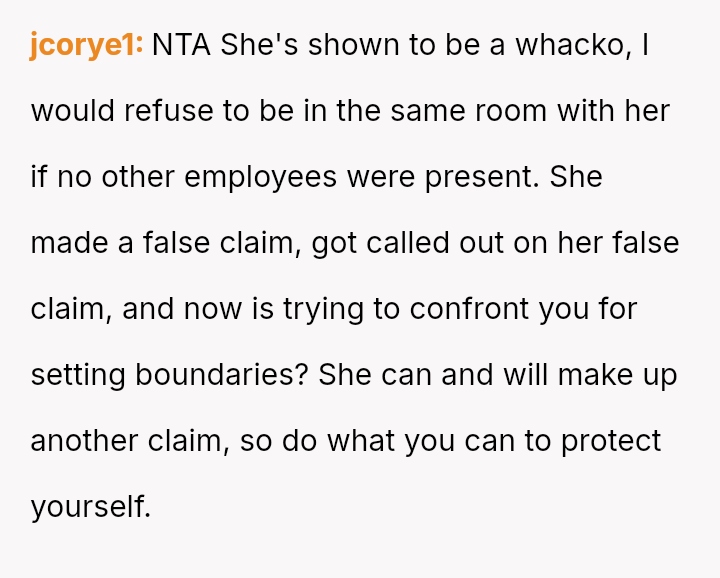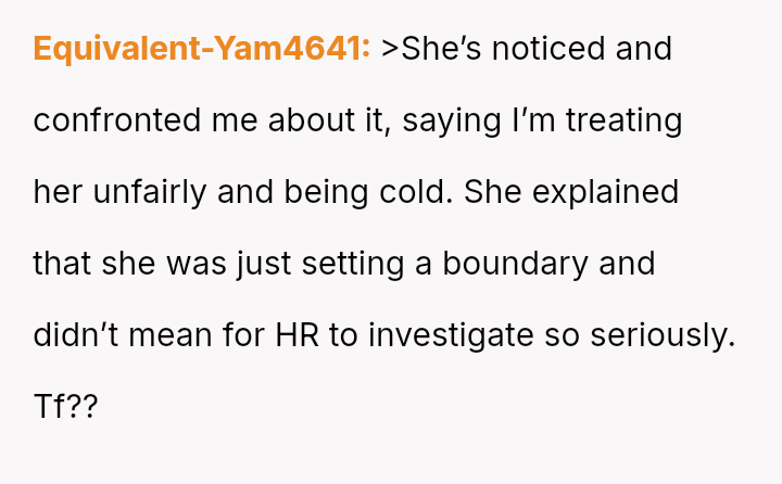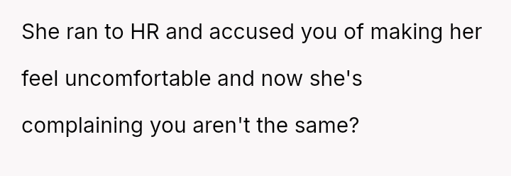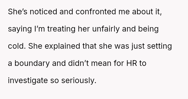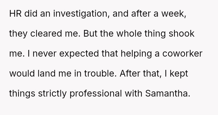 Although HR cleared the OP, he was deeply affected by the event and subsequently began keeping a strict professional distance from Samantha, leading her to confront him about being cold and unfair. The OP is now wondering if he is wrong for maintaining this cautious distance.
