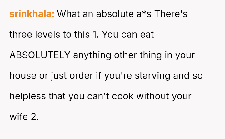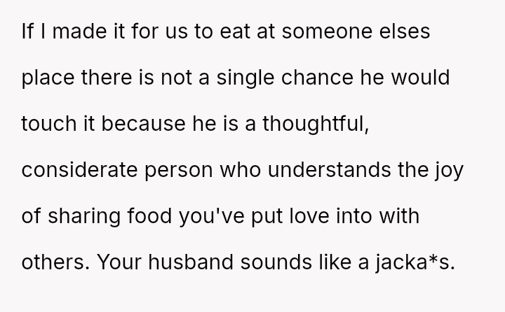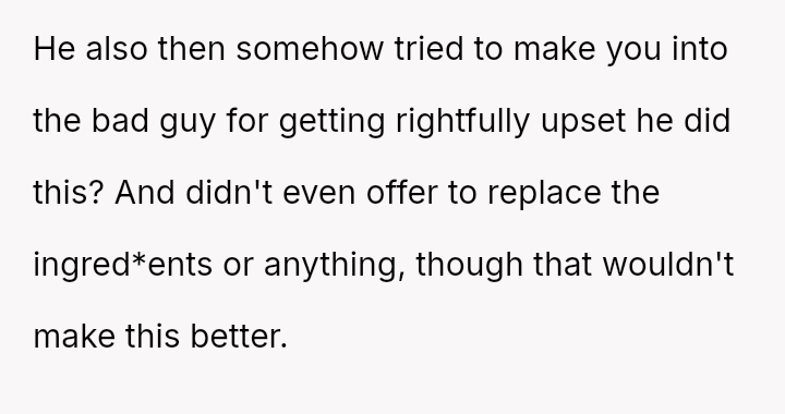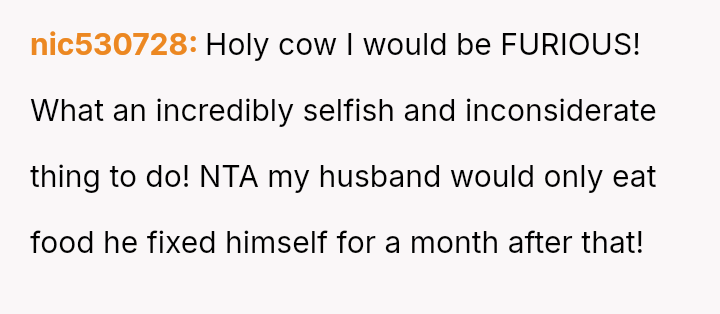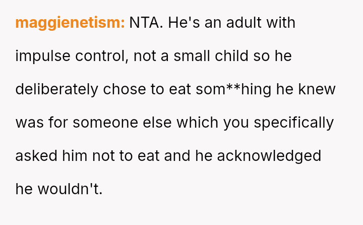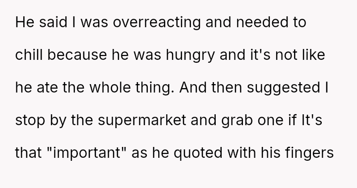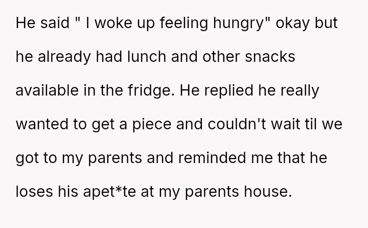 The central conflict arose when the husband knowingly crossed this explicit boundary due to a sudden desire for food, resulting in the OP feeling deeply disrespected and angry about the perceived disregard for her efforts and the niece's special request.