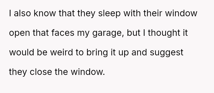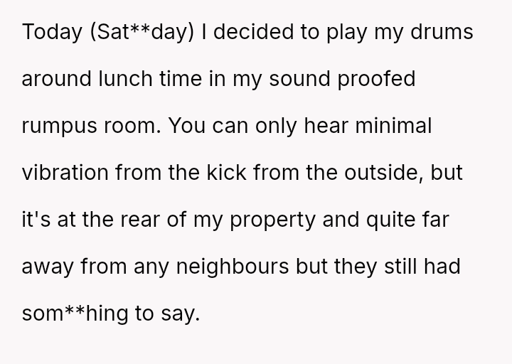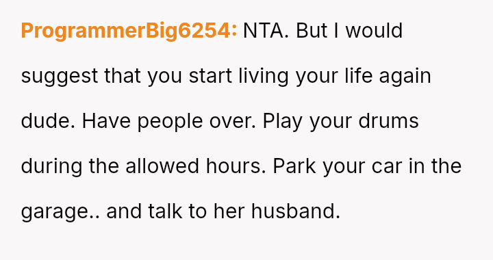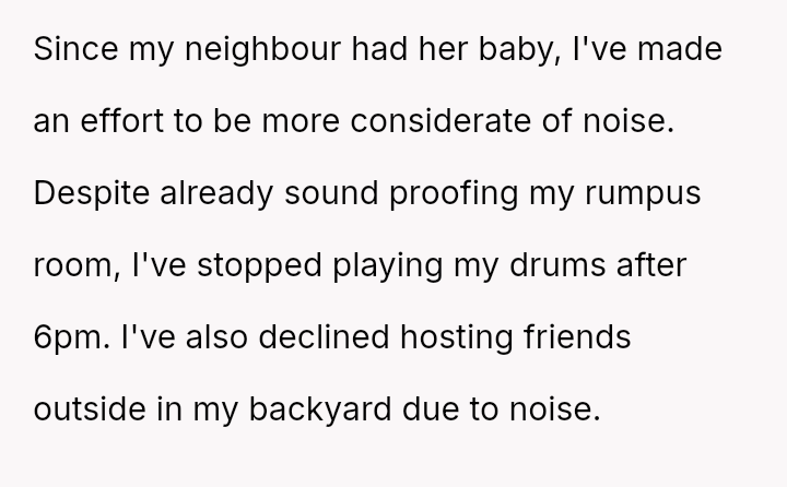 His garage lies just meters from their bedroom, and though his roller door beeps softly upon arrival, he has gone out of his way to muffle every sound, even silencing his beloved drums and refusing social gatherings, all in the hope of preserving peace.
