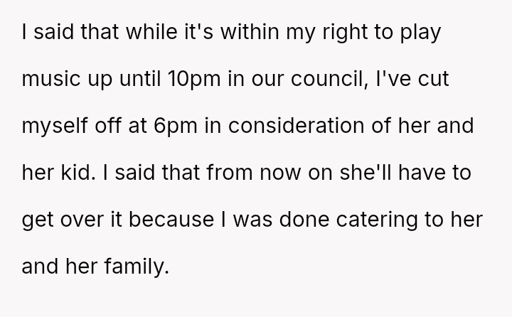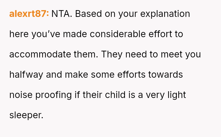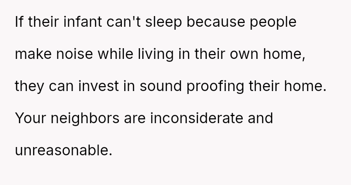 The original poster (OP) feels they have made significant sacrifices regarding noise levels to accommodate their new neighbors and their baby, leading to a sense of frustration and a decision to stop compromising.
