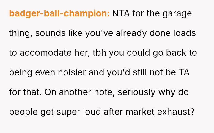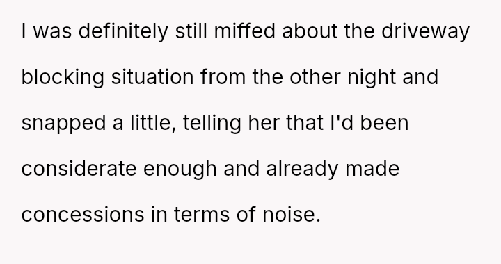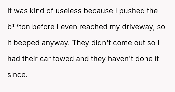 Given the escalation from a quiet garage door beep to blocking a driveway, where does the responsibility for maintaining neighborly peace lie when one party feels they have already made substantial concessions while the other seems to demand absolute silence?