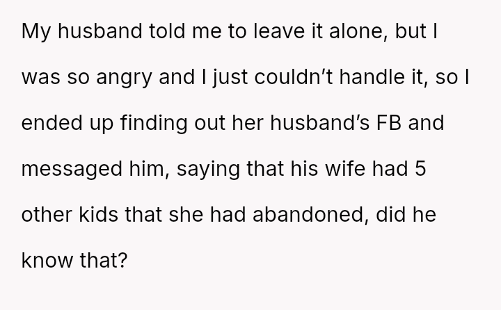 The core question remains: Does the pain of past abandonment justify proactively exposing a secret to a new spouse, or does the desire for accountability override the right of the mother's current family to maintain their es**blished reality?