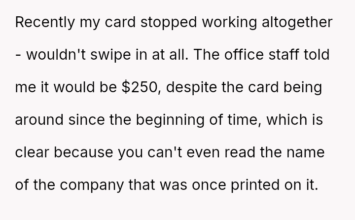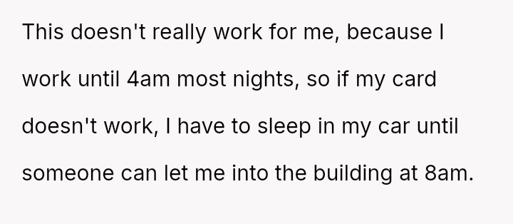 For those like the narrator, who work late into the night, the $250 penalty for a lost or malfunctioning card isn't just a fee—it's a barrier to safety, independence, and peace of mind.