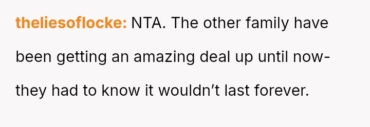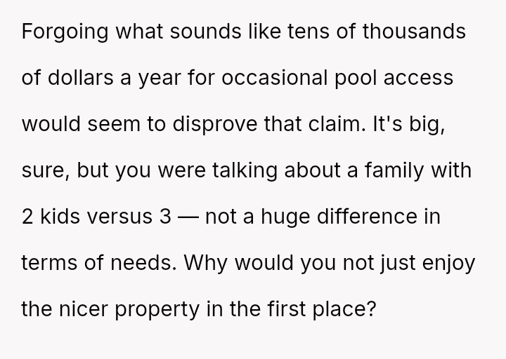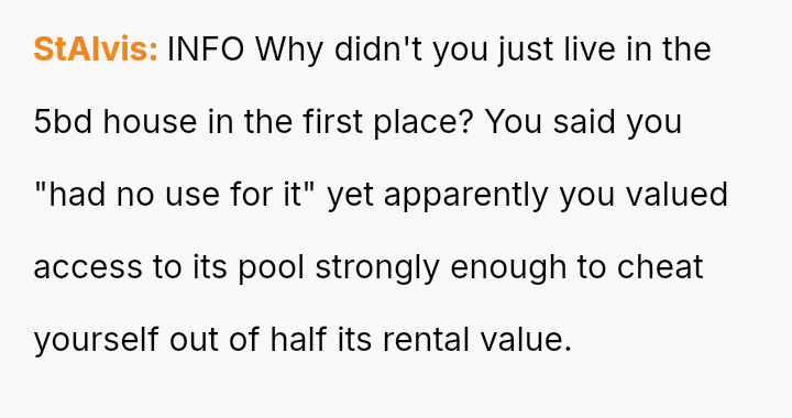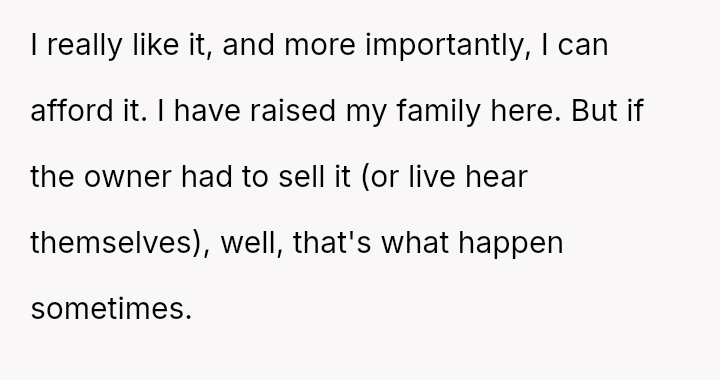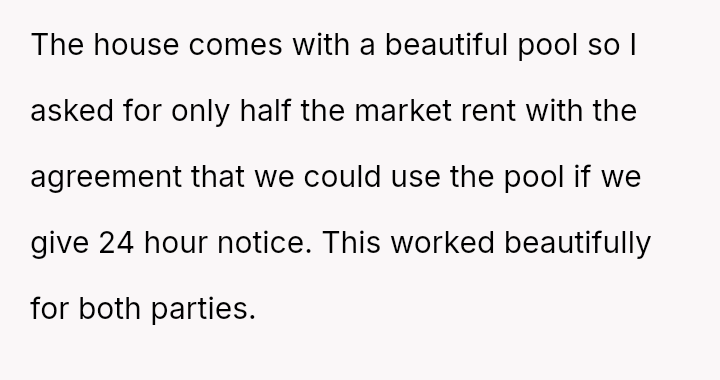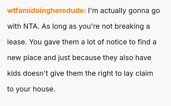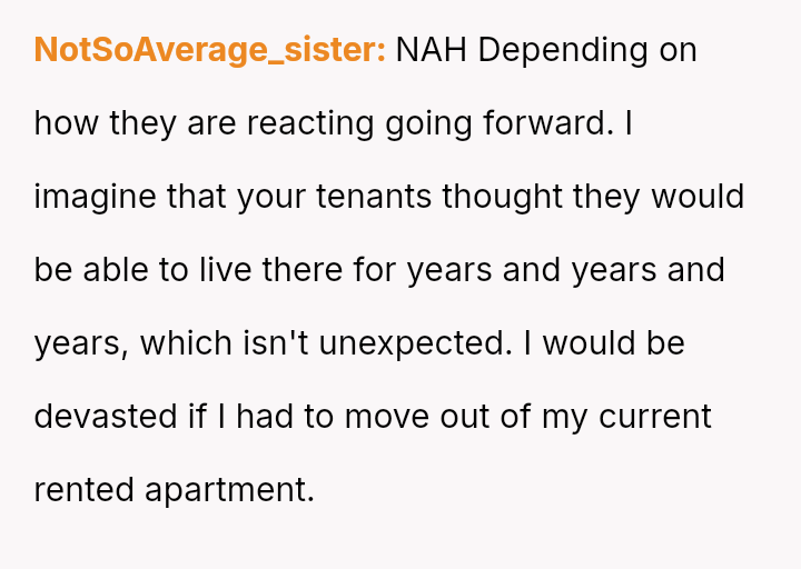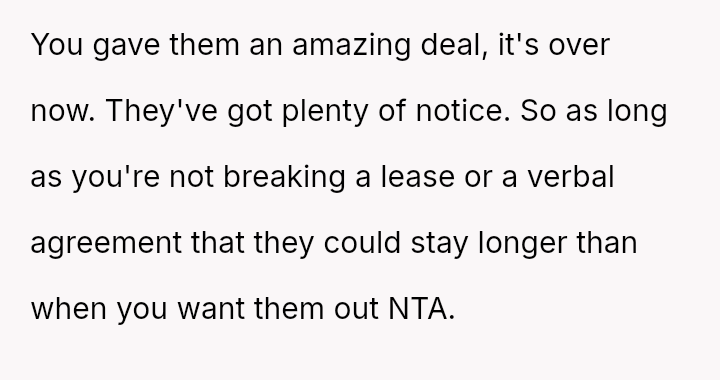 The original poster (OP) is facing a moral conflict after informing tenants, who enjoyed below-market rent in exchange for pool access, that they need to move out so the OP's growing family can move into the inherited house.