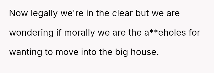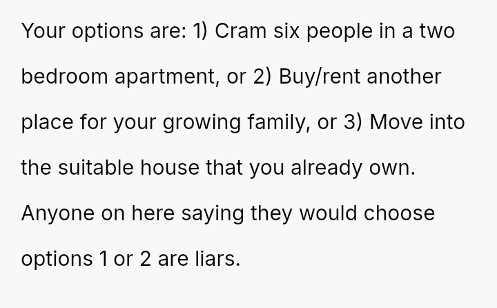 Given that the OP has a legal right to the property and a genuine need to house their expanding family, is the OP morally wrong for a*serting ownership rights, even if it causes significant disruption and emotional distress to long-term, subsidized tenants?
