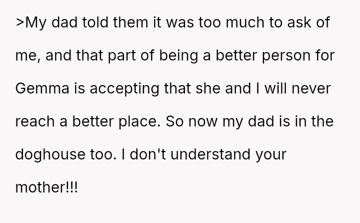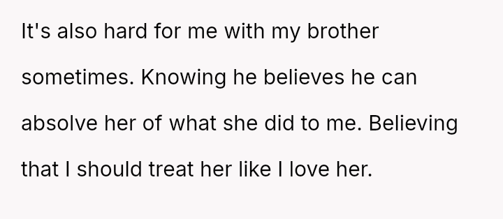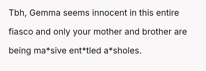 The central conflict lies between the OP's deep-seated trauma from past a**se and the brother's expectation that the OP must forgive and accept Gemma immediately, especially concerning wedding roles.