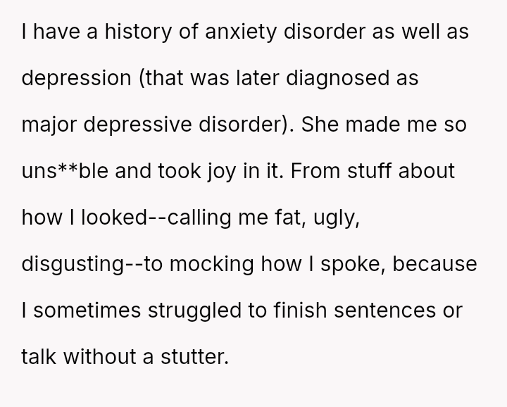 Years of relentless bullying by Gemma left deep scars—emotional wounds that shaped their struggles with anxiety, depression, and self-worth.