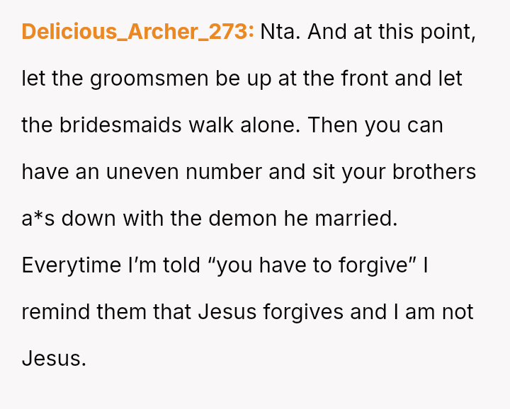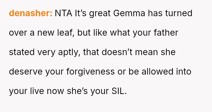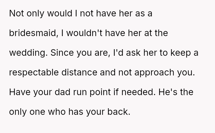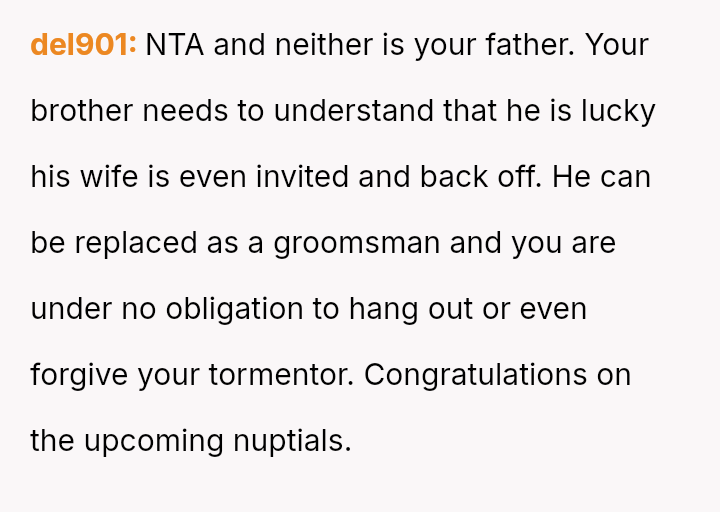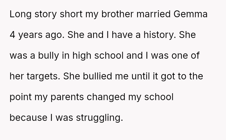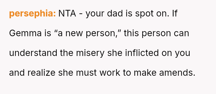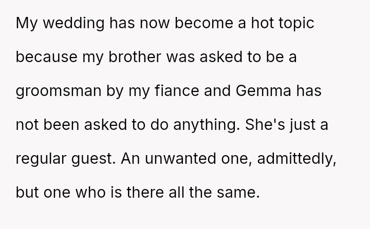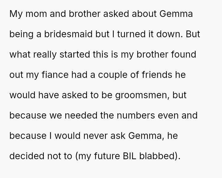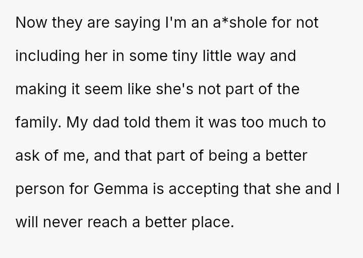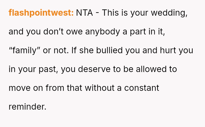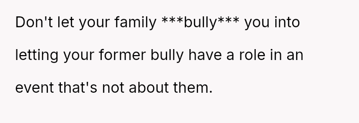 Given the severity of the past bullying, which directly impacted the OP's mental health and education, is the OP obligated to include Gemma in the wedding party, or is maintaining emotional distance and refusing a formal role a necessary act of self-preservation?