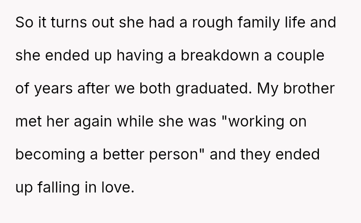 The original poster (OP) is experiencing significant emotional distress because their future sister-in-law, who was a severe high school bully, is now part of the family.