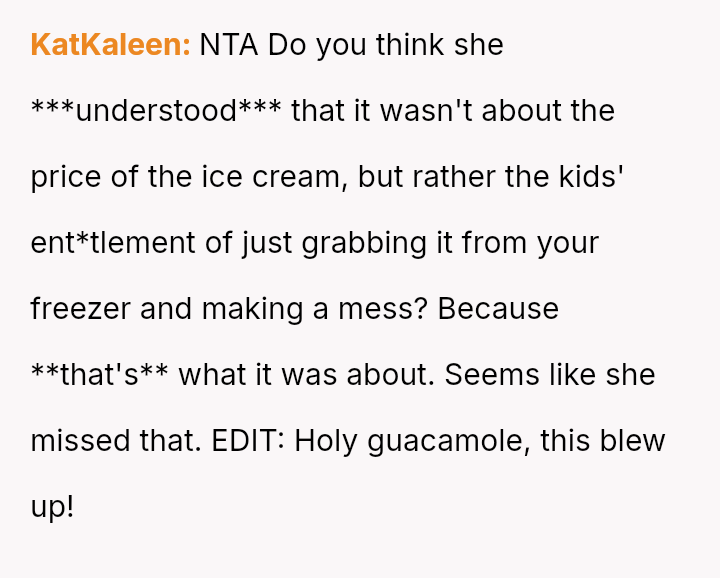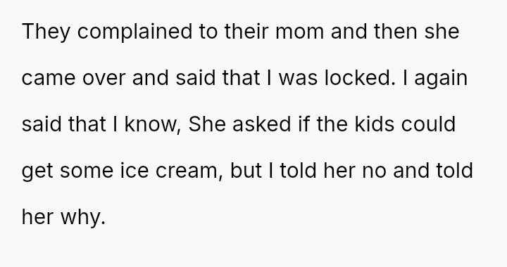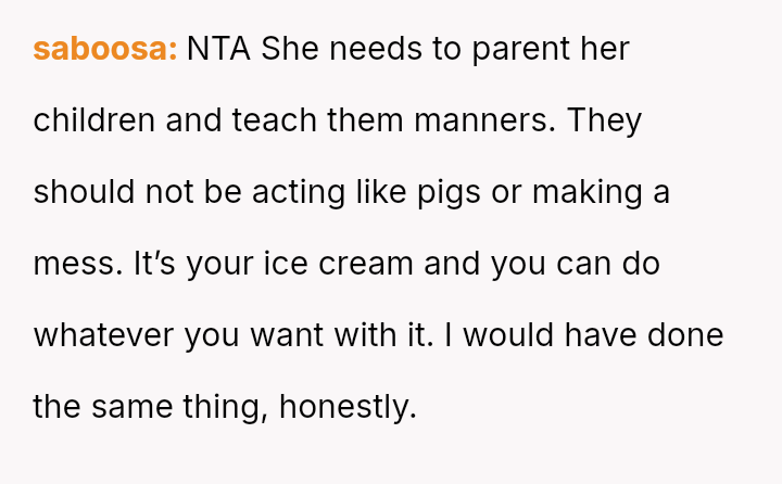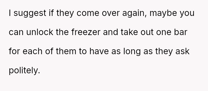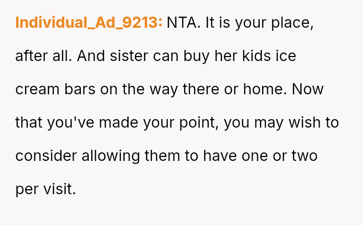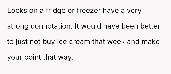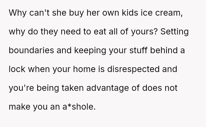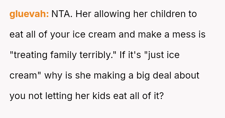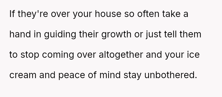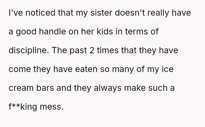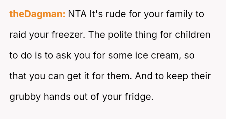 The original poster (OP) acted proactively to protect their property after observing repeated excessive consumption and mess-making by their sister's children regarding the ice cream supply.