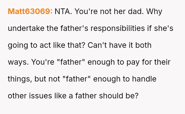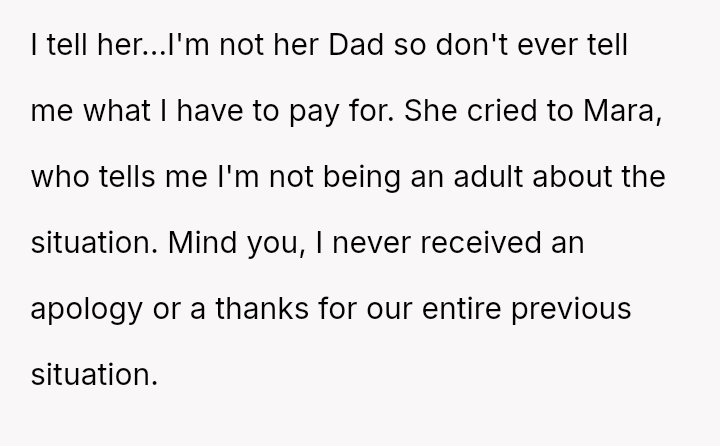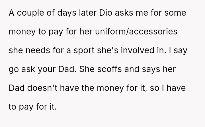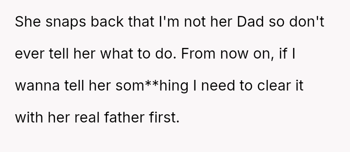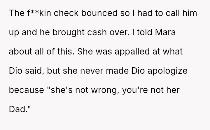 Should Maple continue to provide substantial financial and emotional support while accepting a complete lack of respect and formal parental recognition from both Diomara and Mara, or is the child's statement, 'you're not her Dad,' a clear signal that Maple must immediately redefine his role and withdraw financial commitment until boundaries and respect are es**blished?