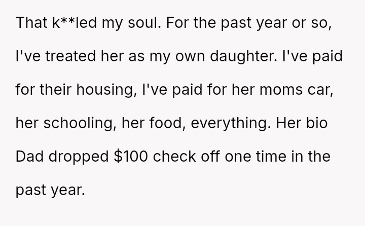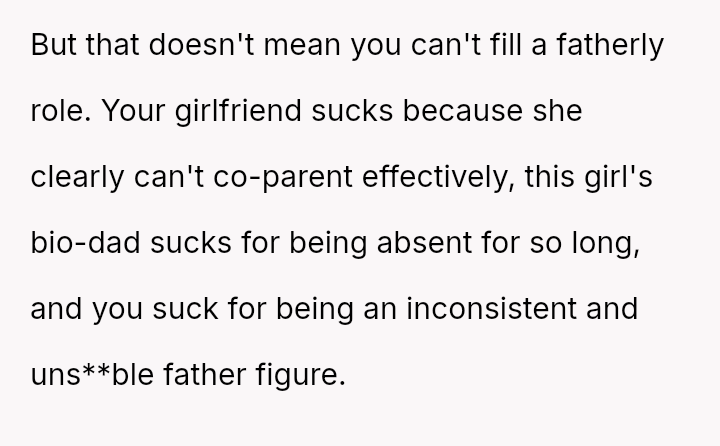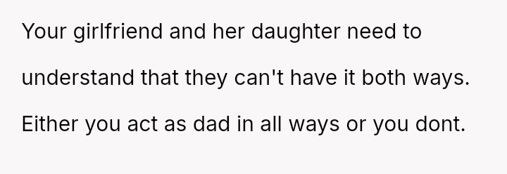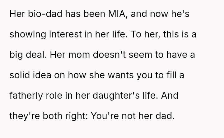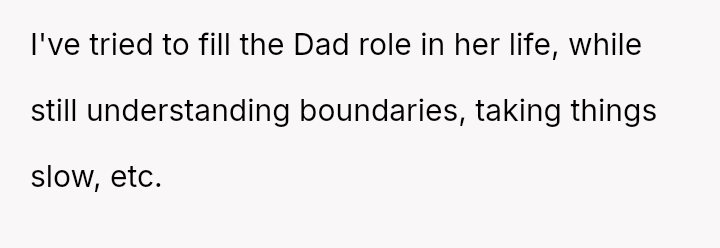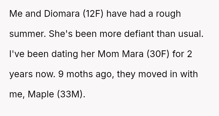 The original poster (Maple) is experiencing deep emotional hurt and frustration because his significant investment in a parental role for his girlfriend's daughter (Diomara) has been entirely rejected.