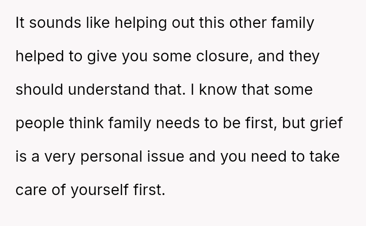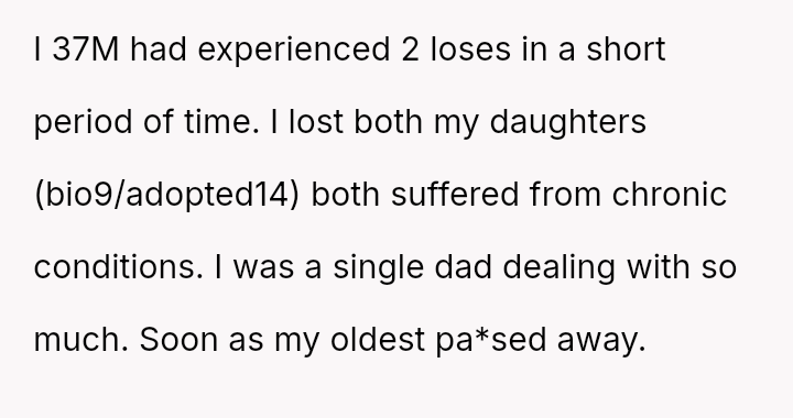 The original poster (OP) is grappling with profound grief following the loss of both his daughters and is seeking meaning and connection through helping a new friend and his son.