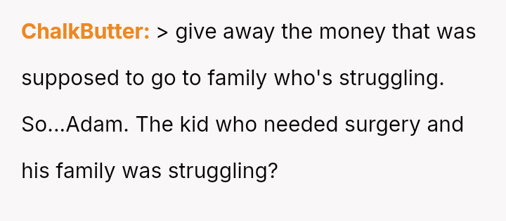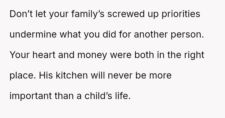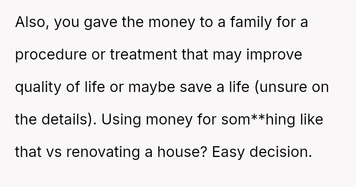 The central conflict arises when the OP uses a specific fund, intended by him as a legacy gift for a sick child, which directly clashes with his family's expectation that this money should be reserved for their own family's financial needs.