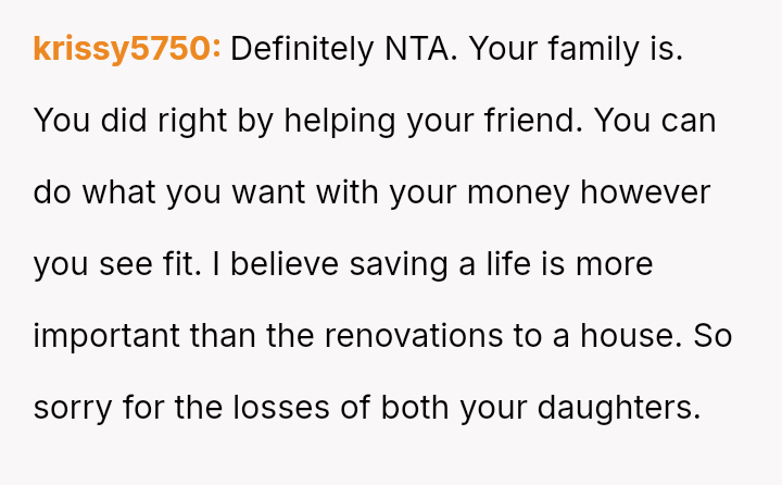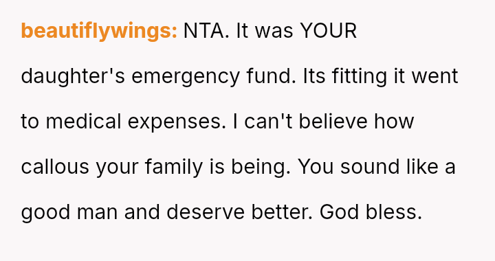 Does the OP have the moral and financial right to allocate his deceased daughter's emergency fund based on his personal sense of duty and compa*sion toward a struggling friend's child, or did he neglect his existing family obligations by making such a significant, unshared decision?