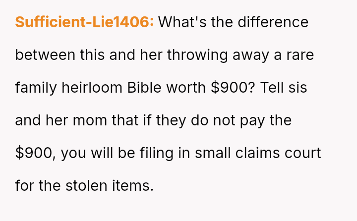 Her attempt to seek financial rest*tution led to the sister-in-law leaving immediately and escalating the conflict to her family, painting the OP as unreasonable and punitive.
