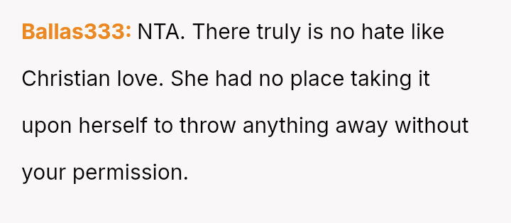 The core debate centers on whether the spiritual and monetary value of destroyed personal property justifies demanding financial replacement from a guest in crisis, or if compa*sion for the guest’s vulnerable situation should have overridden the right to reimburs**ent.