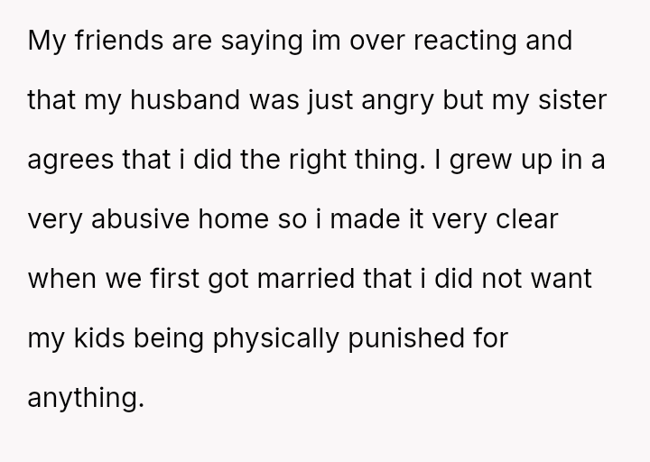 The OP is deeply concerned by this breach of their mutual agreement against physical punishment, leading her to prepare for divorce.