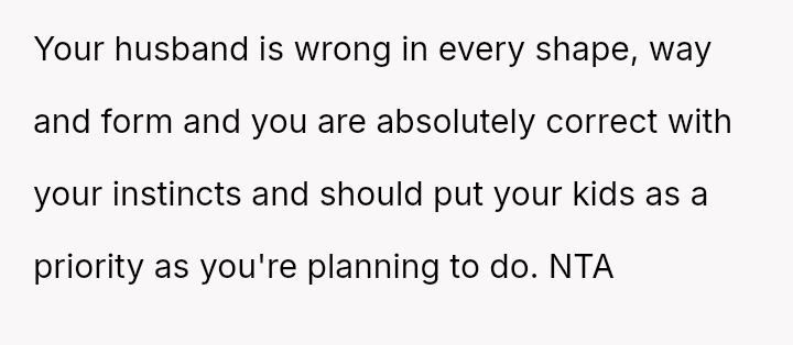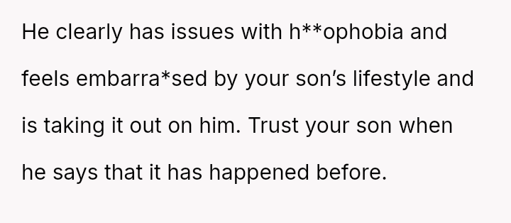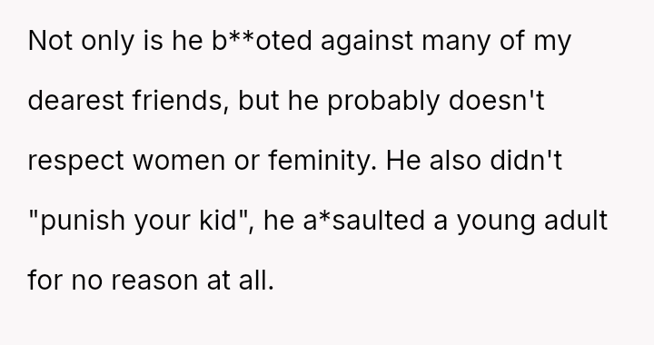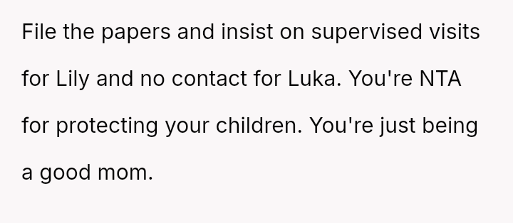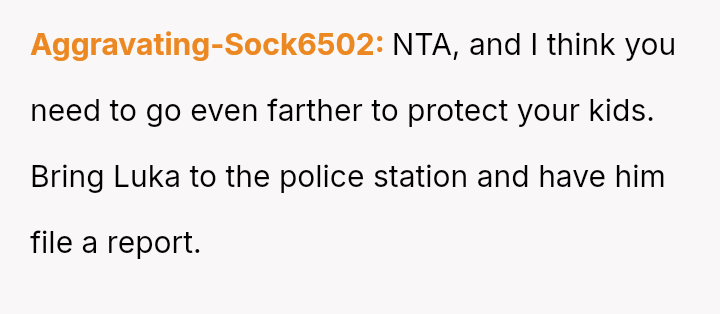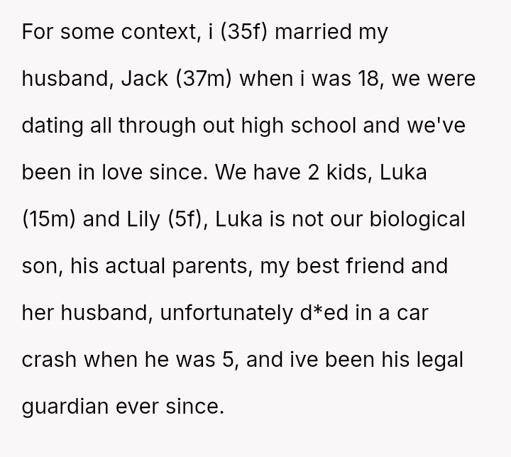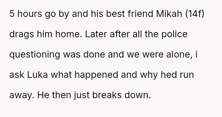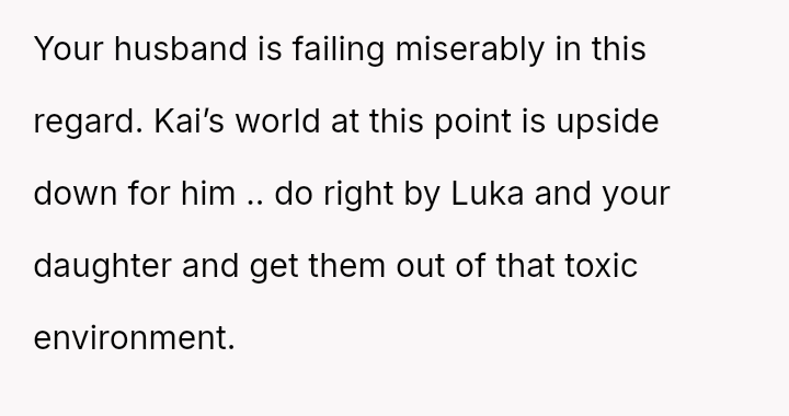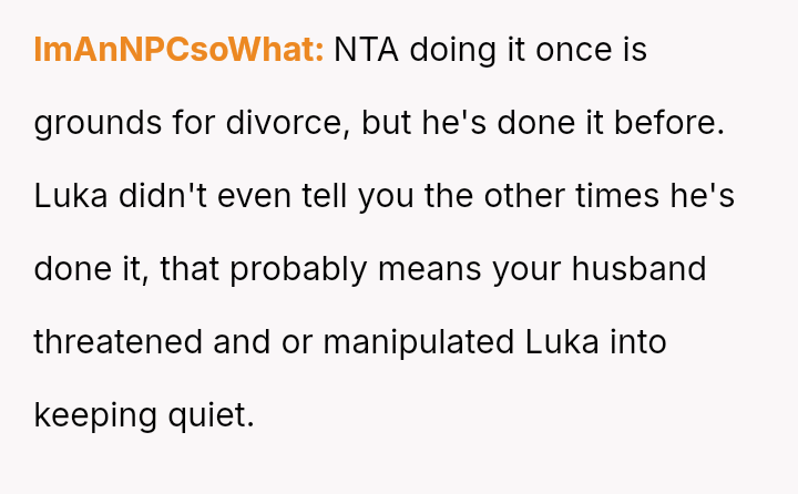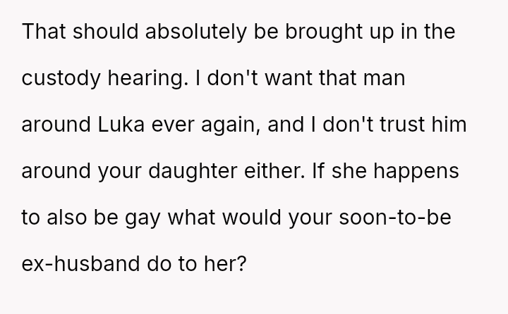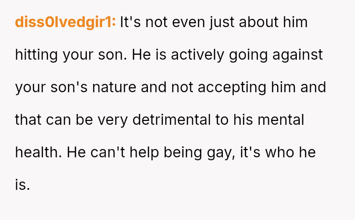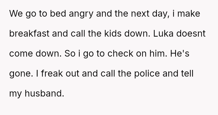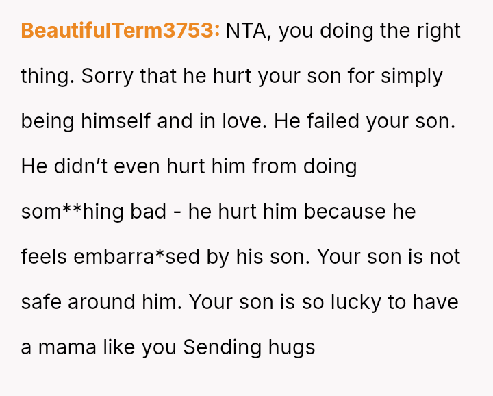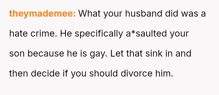 The original poster (OP) is facing a severe conflict between her commitment to protecting her children from physical harm and her husband's recent act of striking their 15-year-old son, Luka, following a confrontation about Luka's s*xual orientation and public affection.