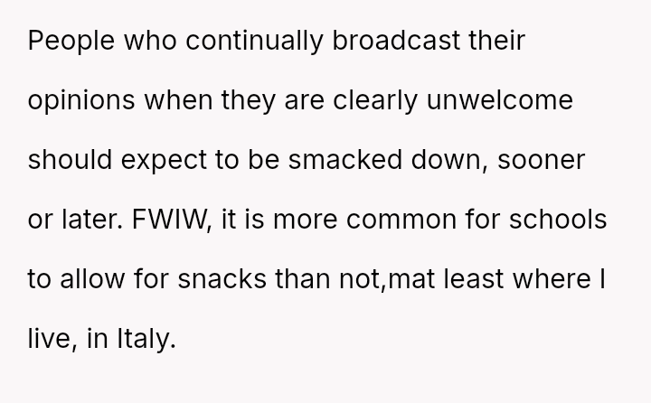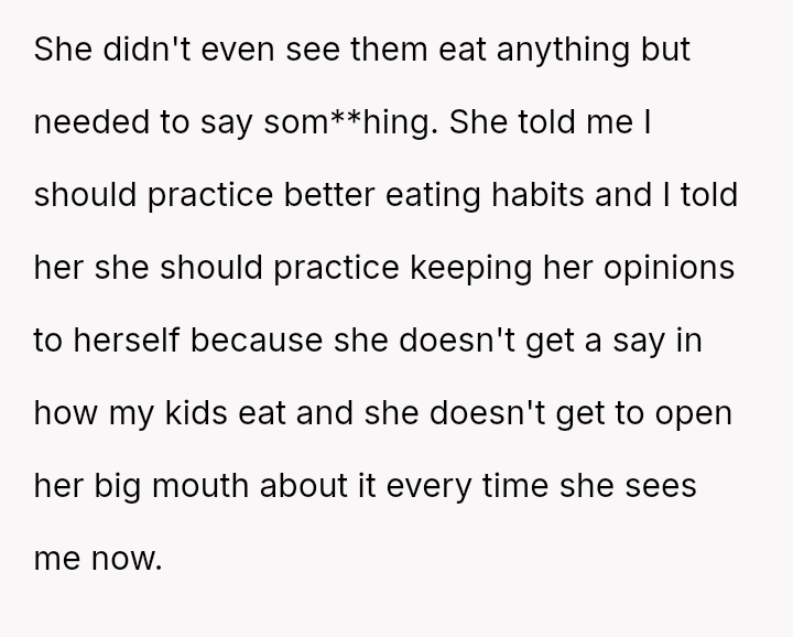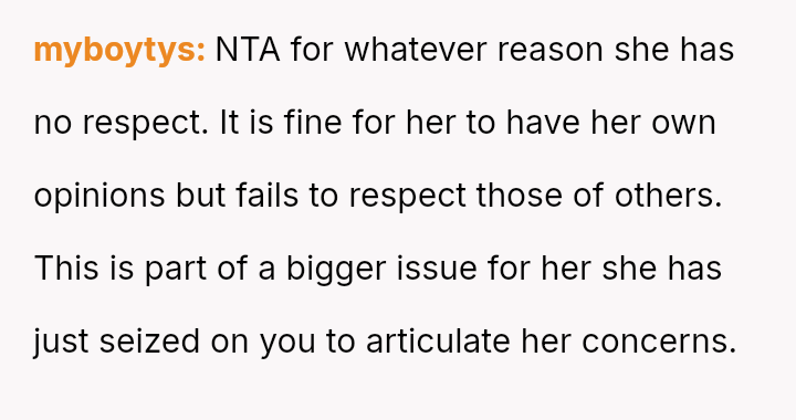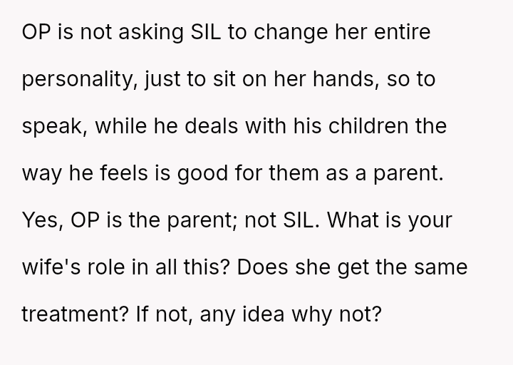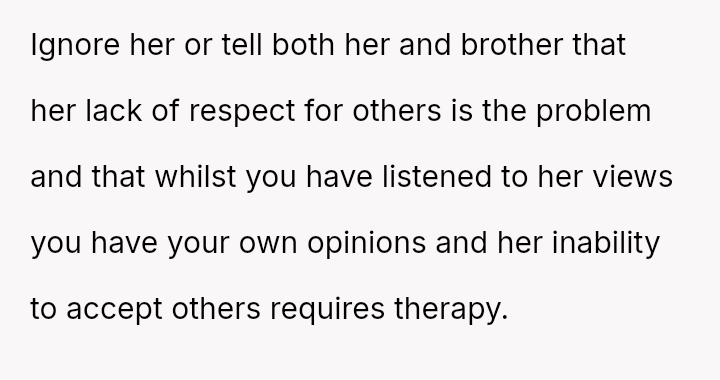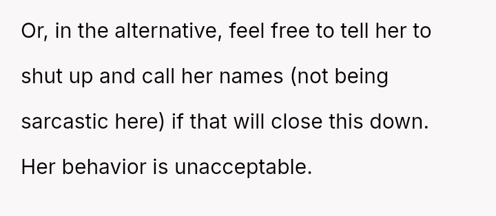 Given the clear boundary v***ation by the SIL, was the OP justified in telling her to keep her opinions to herself, or did this reaction escalate the conflict unnecessarily?