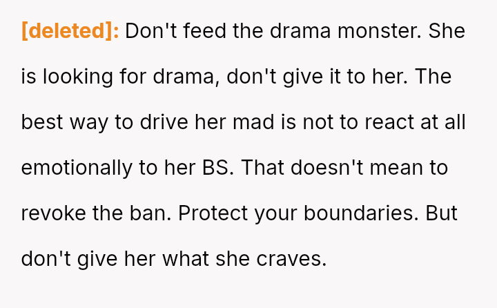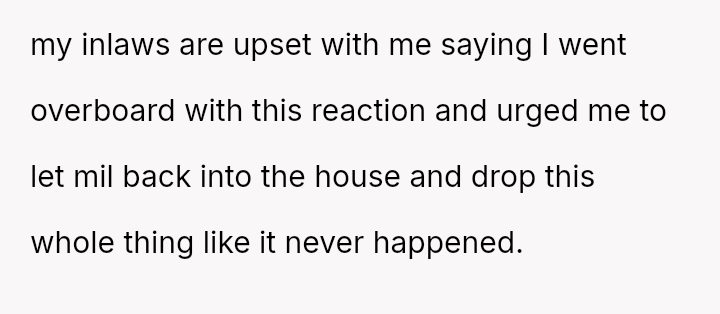 The conflict centers on the OP's justified emotional reaction against the MIL's persistent disrespect, contrasted with the MIL's and husband's perception that the OP's resulting action—banning the MIL—was an extreme overreaction that infringed upon shared marital decision-making.