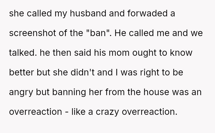 Was the OP justified in immediately banning her mother-in-law from the house as a defense mechanism against profound disrespect in her new shared space, or did this drastic step escalate a difficult situation unnecessarily, undermining the shared ownership and respect required in her marriage?