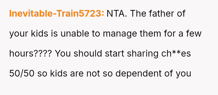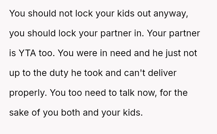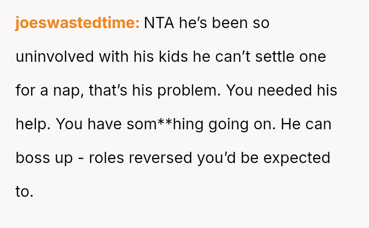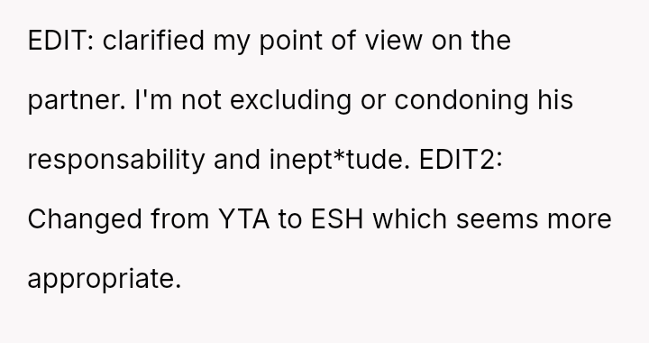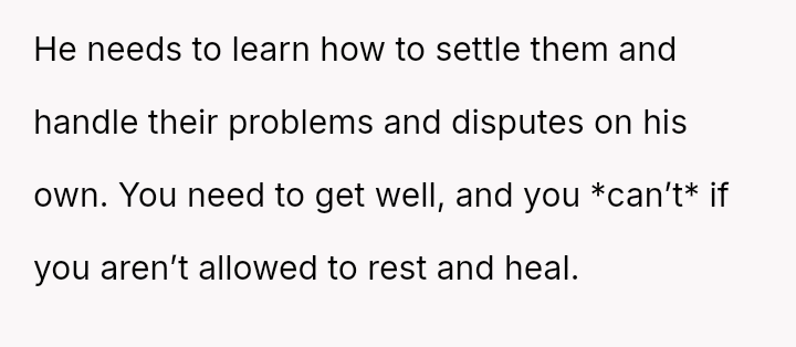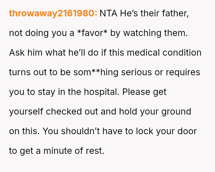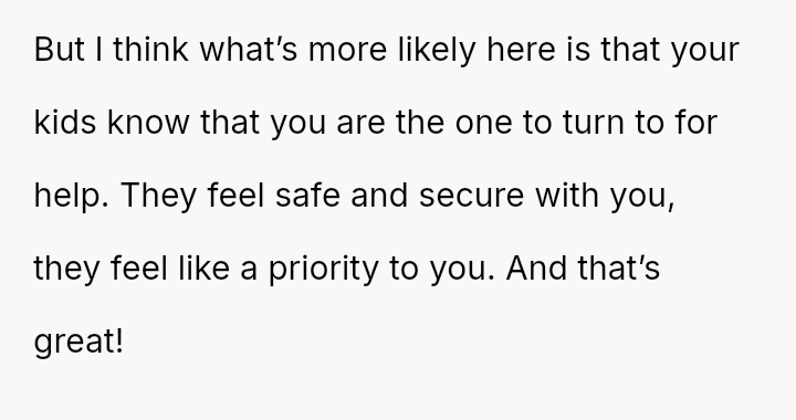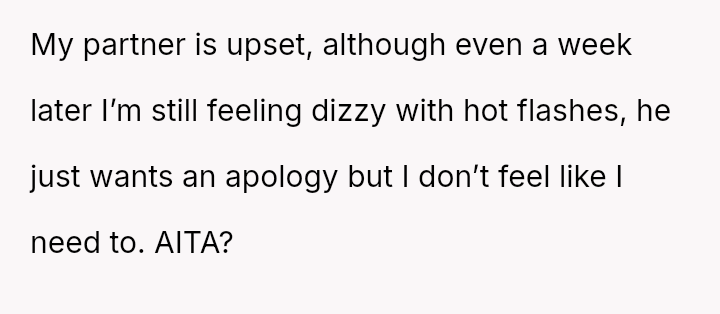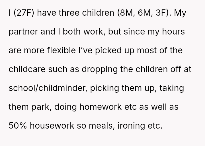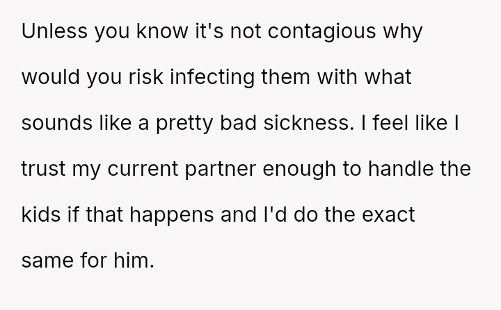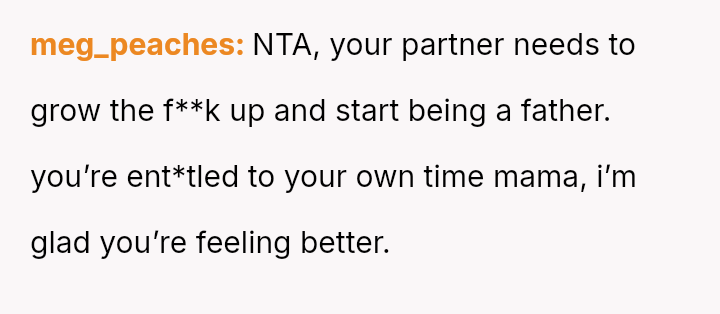 Given the es**blished division of labor and the OP's genuine sickness, was it reasonable for the partner to insist she manage the emotional needs of the children, or did the OP have a right to complete physical withdrawal from care duties for one day?