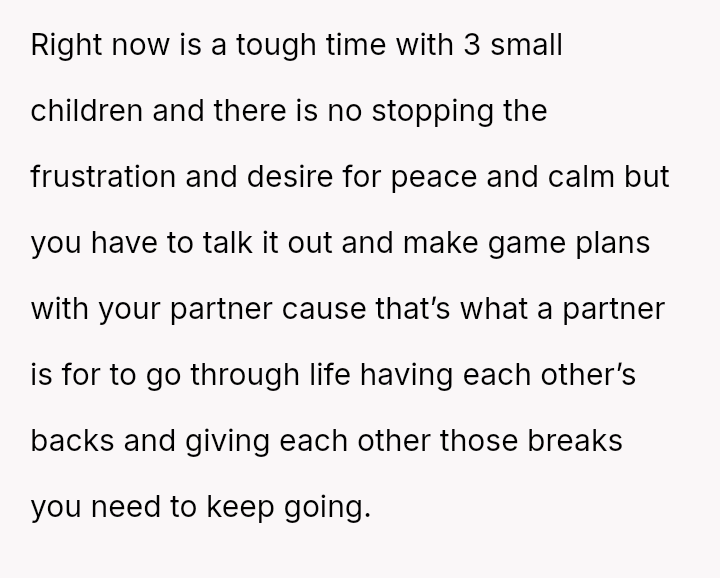 Despite both parents working, she shoulders the bulk of childcare and domestic duties, often sacrificing her own well-being to keep the family moving forward.