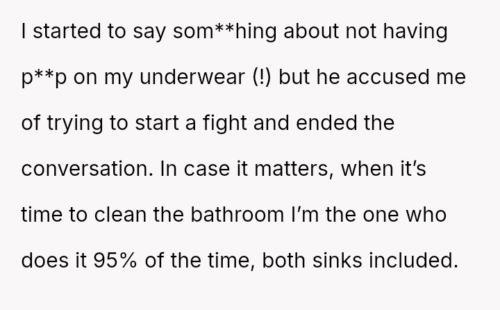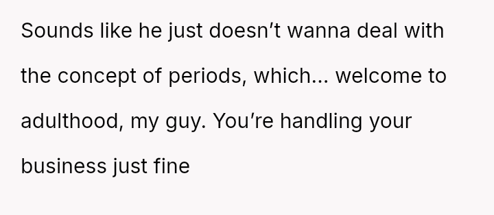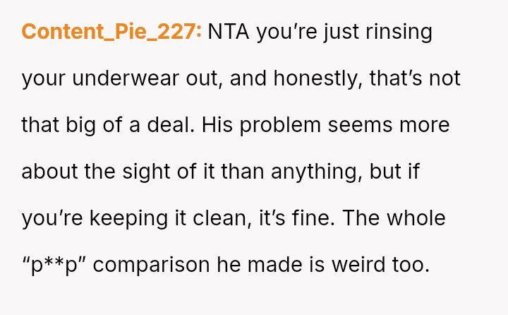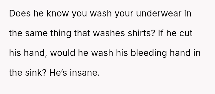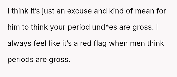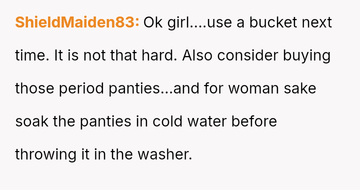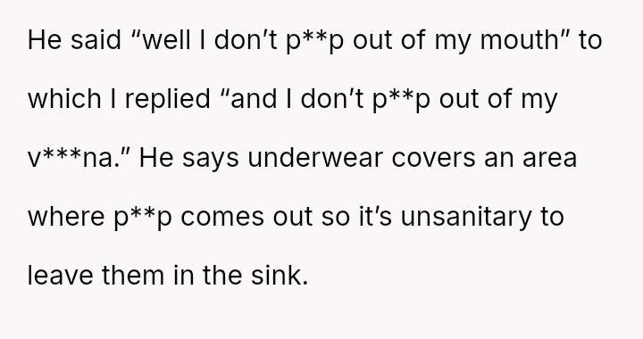 His insistence on moving her soaking underwear out of the sink, despite the practicality and hygiene of her m**hods, uncovers a deeper discomfort with the visible traces of her cycle.