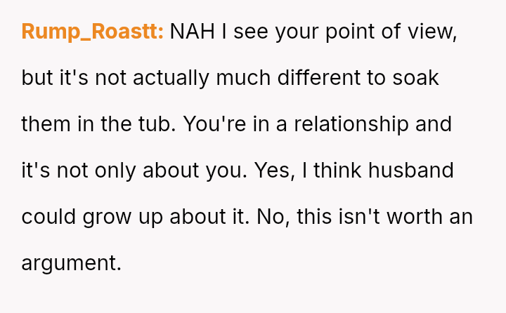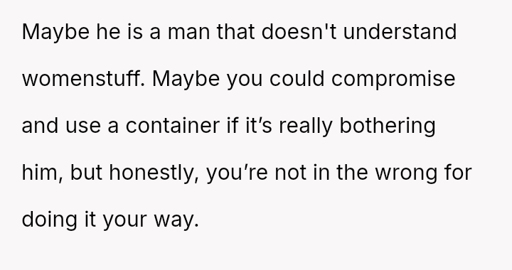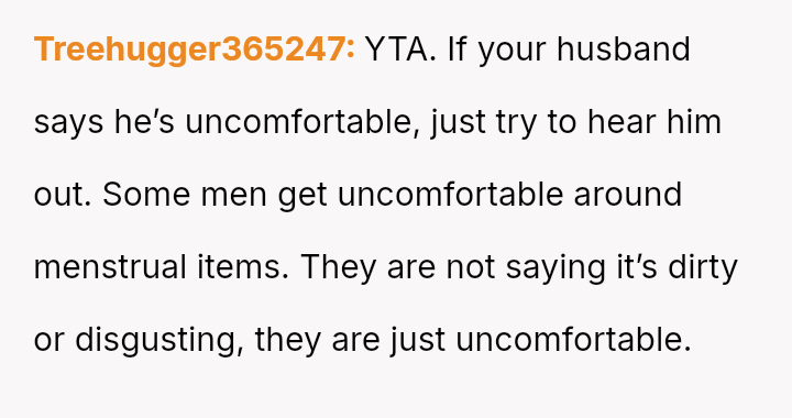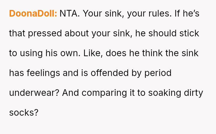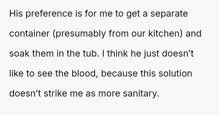 Is the OP justified in using their own sink for soaking menstrual items when the husband objects based on a subjective 'unsanitary' feeling, or should the OP accommodate their husband's discomfort by moving the soaking process to a different location, even if it seems less practical?