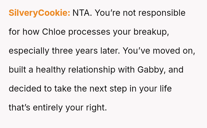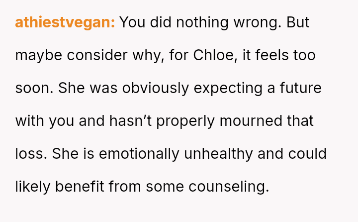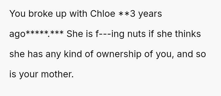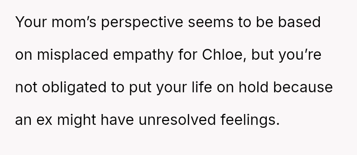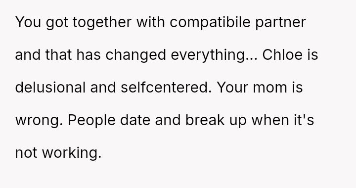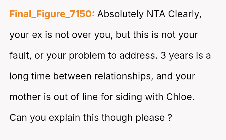 Was the OP wrong for celebrating his happiness without anticipating or mitigating the severe, prolonged reaction from his ex-partner and her circle, especially given his mother's reaction, or is the responsibility for managing Chloe's feelings solely hers now that the relationship is long over?