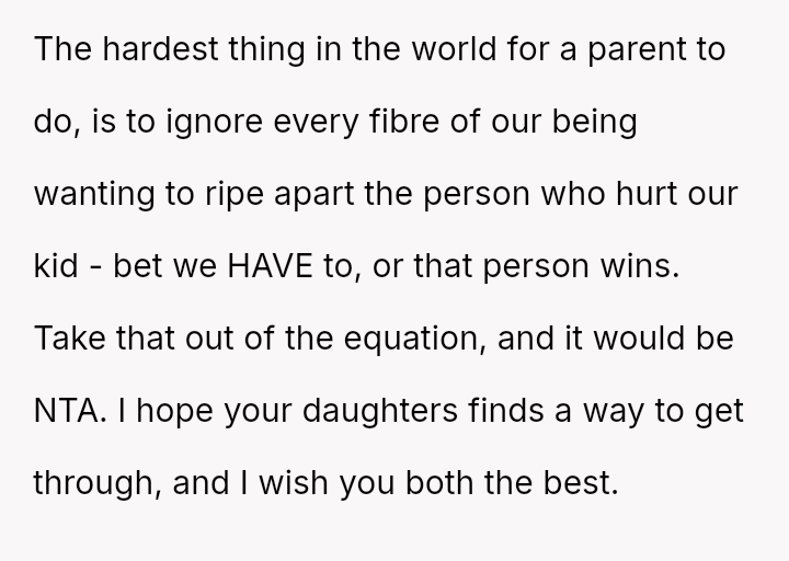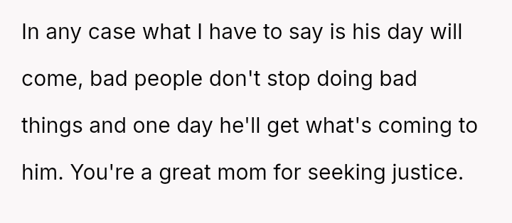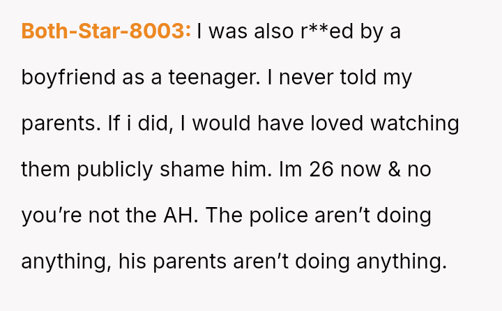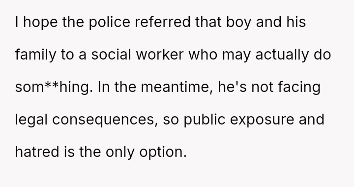 Given the OP's emotionally charged public confrontation, the core question for debate is whether the parents' immediate need for emotional release and signaling that the victim will not be forgotten justifies public confrontation with a minor, even when official channels have failed, or if this action risks negative personal consequences without achieving meaningful justice.