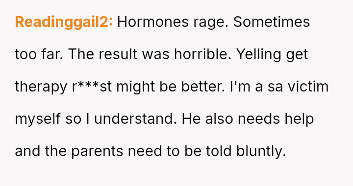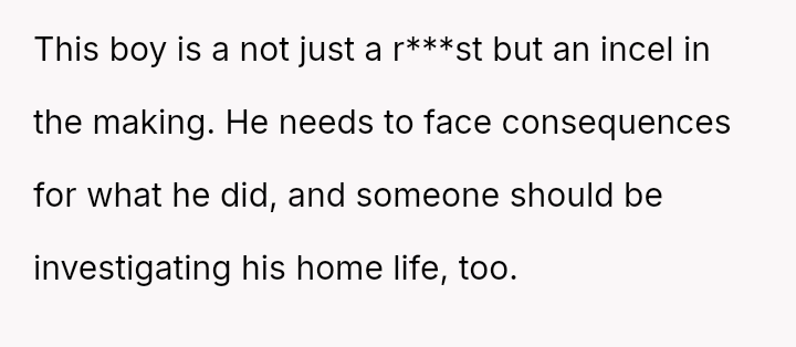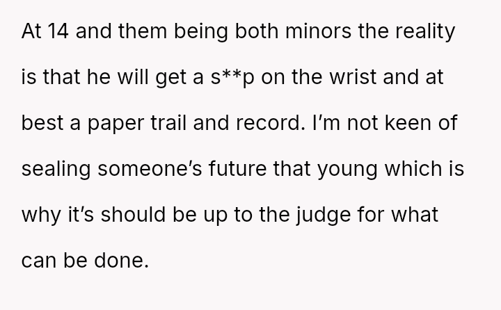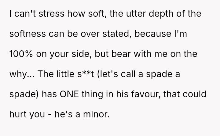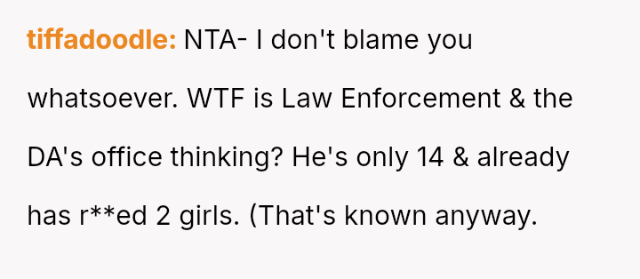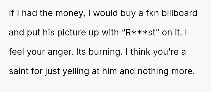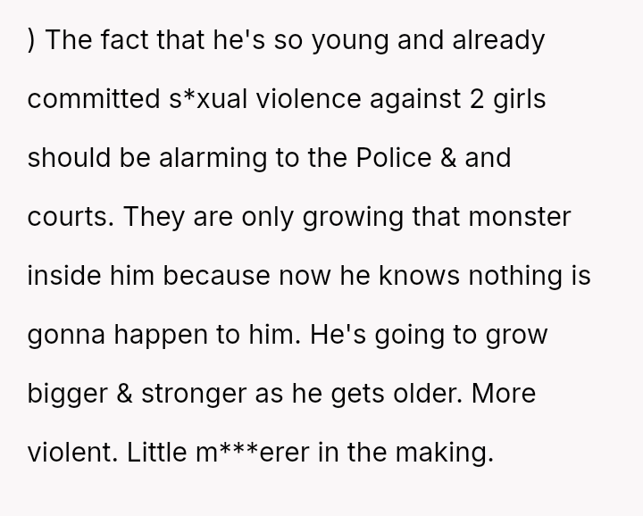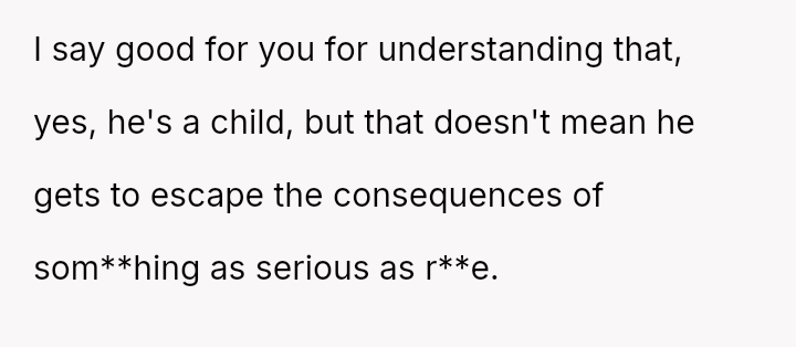 The original poster (OP) is experiencing intense, justifiable anger and a profound sense of injustice because the legal system could not pursue charges against the alleged r***st, who is also a minor.