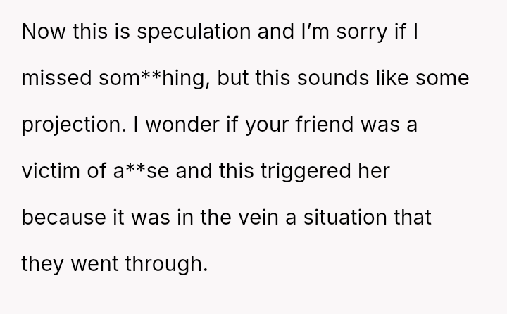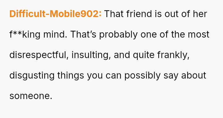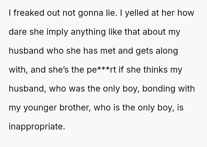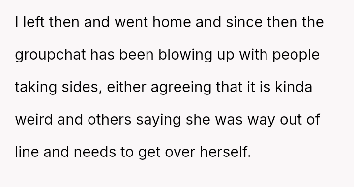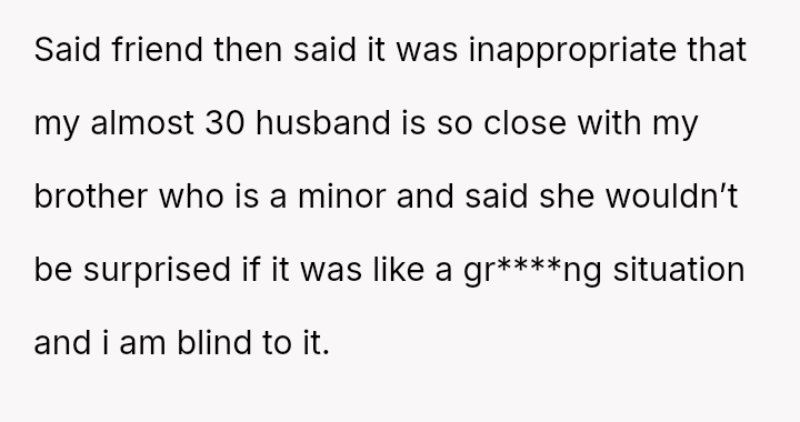 When a friend suggested this closeness was inappropriate and implied gr****ng, the OP became very upset, yelled at the friend, and immediately left, leading to conflict within her friend group.