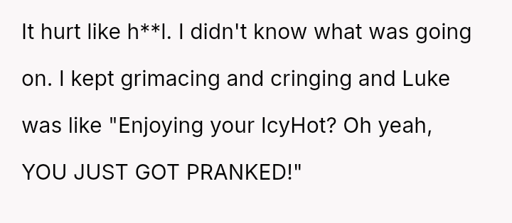 The original poster (OP) is experiencing significant pain, embarra*sment, and anger following a malicious act disguised as a prank by her boyfriend, Luke.