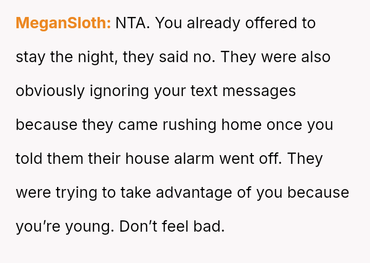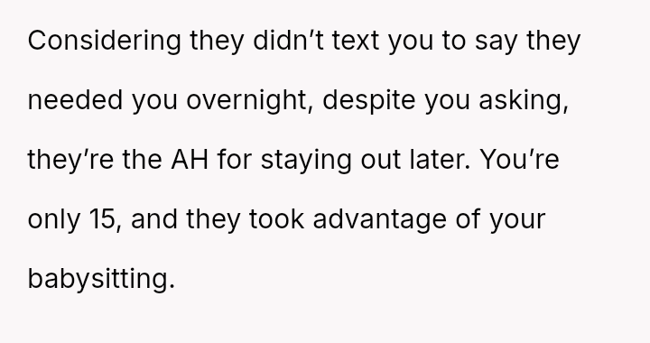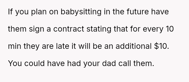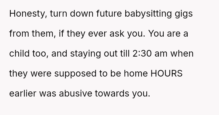 Given the clear breach of contract by the parents regarding time and communication, was the babysitter's fabrication of a break-in attempt an acceptable, albeit high-risk, m**hod of self-advocacy, or did this action permanently damage the professional relationship and cross an ethical line for service providers?