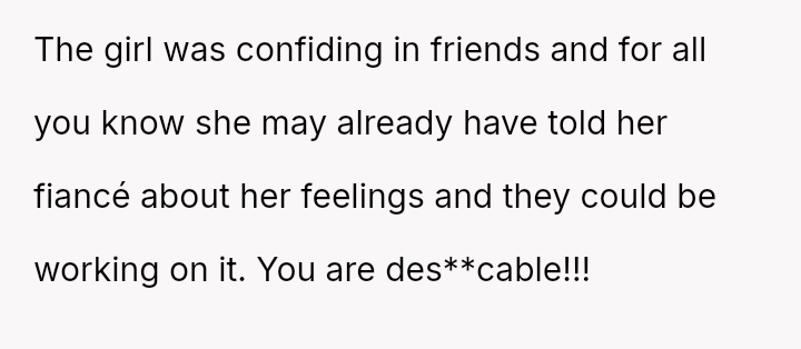 The user is experiencing significant distress, feeling like an "a*shole" for intervening in their friend's relationship dynamics by sharing recorded evidence of the fiancée's negative comments about his son.